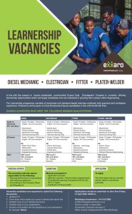 In fine with the mission to ‘power sustainable communities’ Exxaro Coal, Grootegeluk Complex is currently offering learnership opportunities which will target candidates who are interested in growing their careers within Engineering.