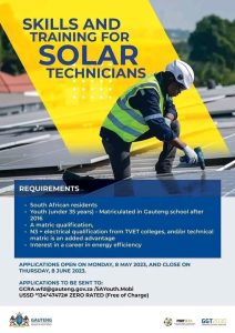 Youth in South Africa (under the age of 35) are encouraged to apply and take advantage of this opportunity. Candidates must have graduated from a Gauteng institution after 2016. A TVET college N3+ electrical qualification and/or a technical matriculation are advantages. Ideally, applicants should also be interested in a career in green technology, electrical work, or energy efficiency.