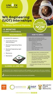 Apply online by following this link: https://learners.resolutioncircle.co.za/ register?stream=nsf_wil_tvet