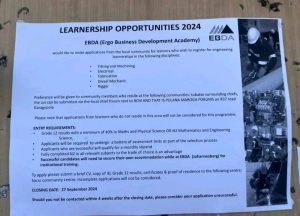 LEARNERSHIP OPPORTUNITIES 2024 EBDA (Ergo Business Development Academy)